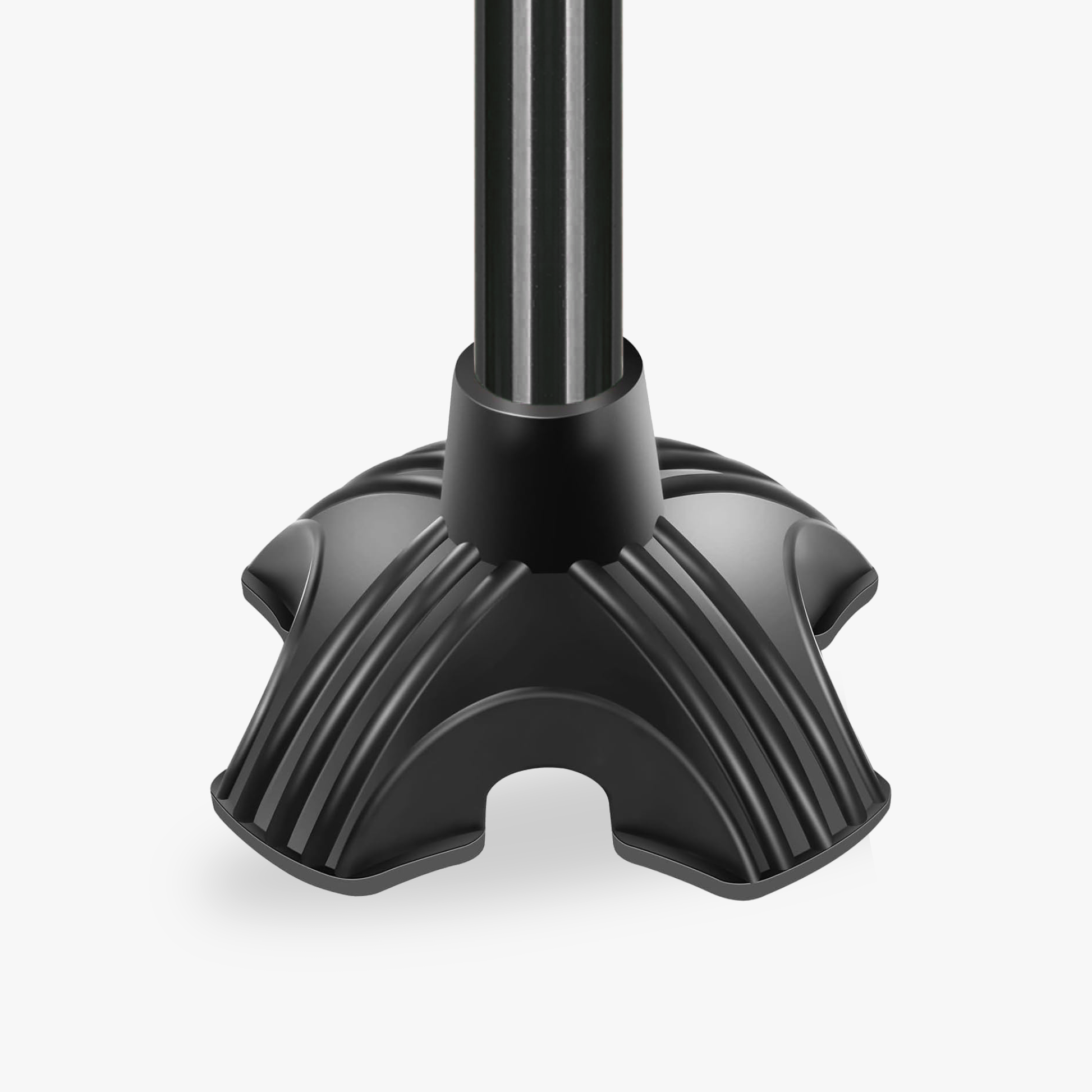 A self-standing quad base designed to keep your cane upright and your movement balanced — with four-point contact for everyday stability on any surface.