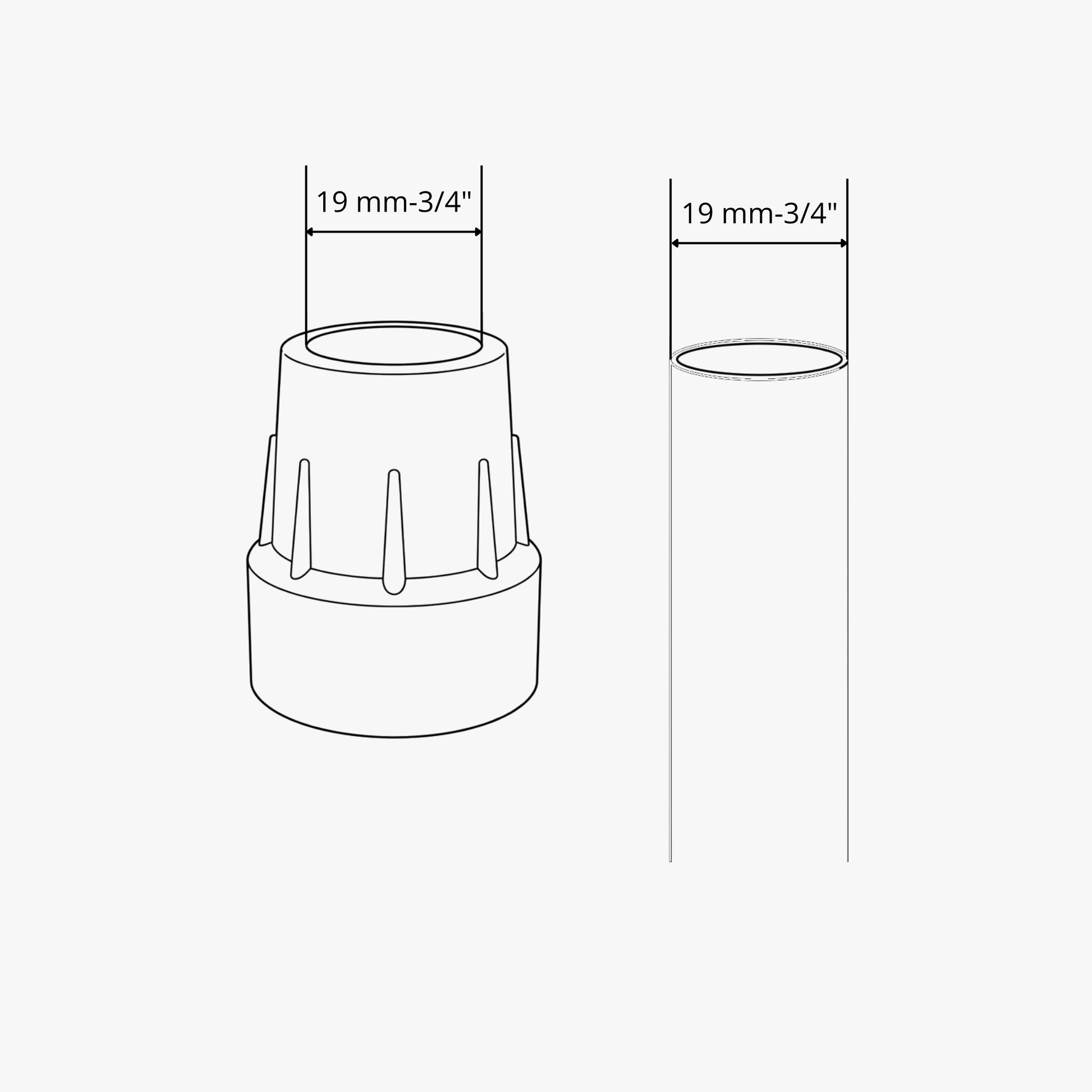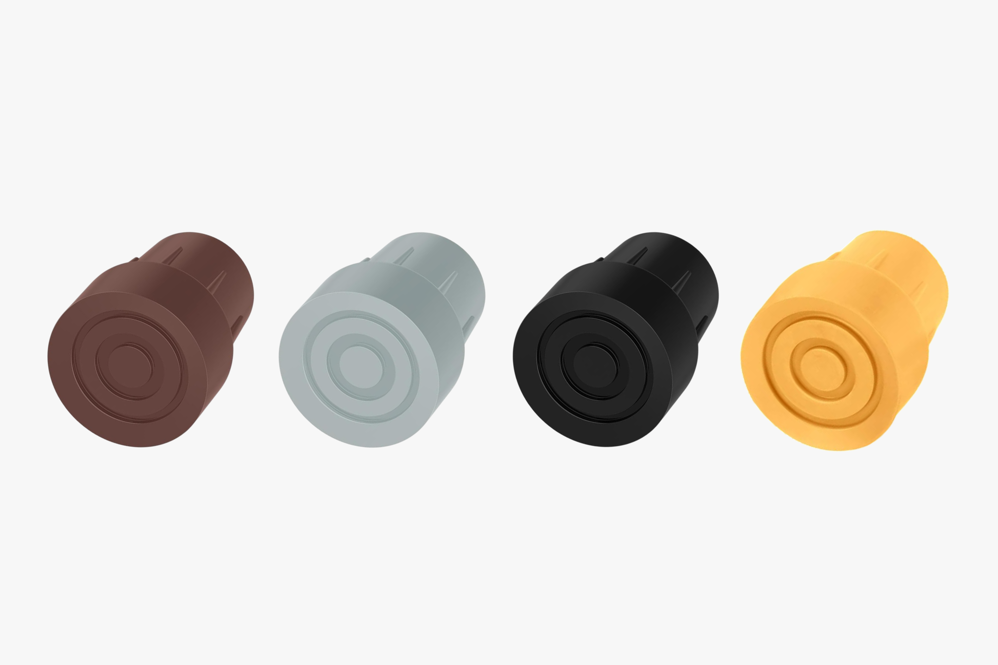 Universal rubber tips designed to fit most aluminum and wooden canes, crutches, walkers, and commodes. Provide secure grip, floor protection, and stable support for everyday use.